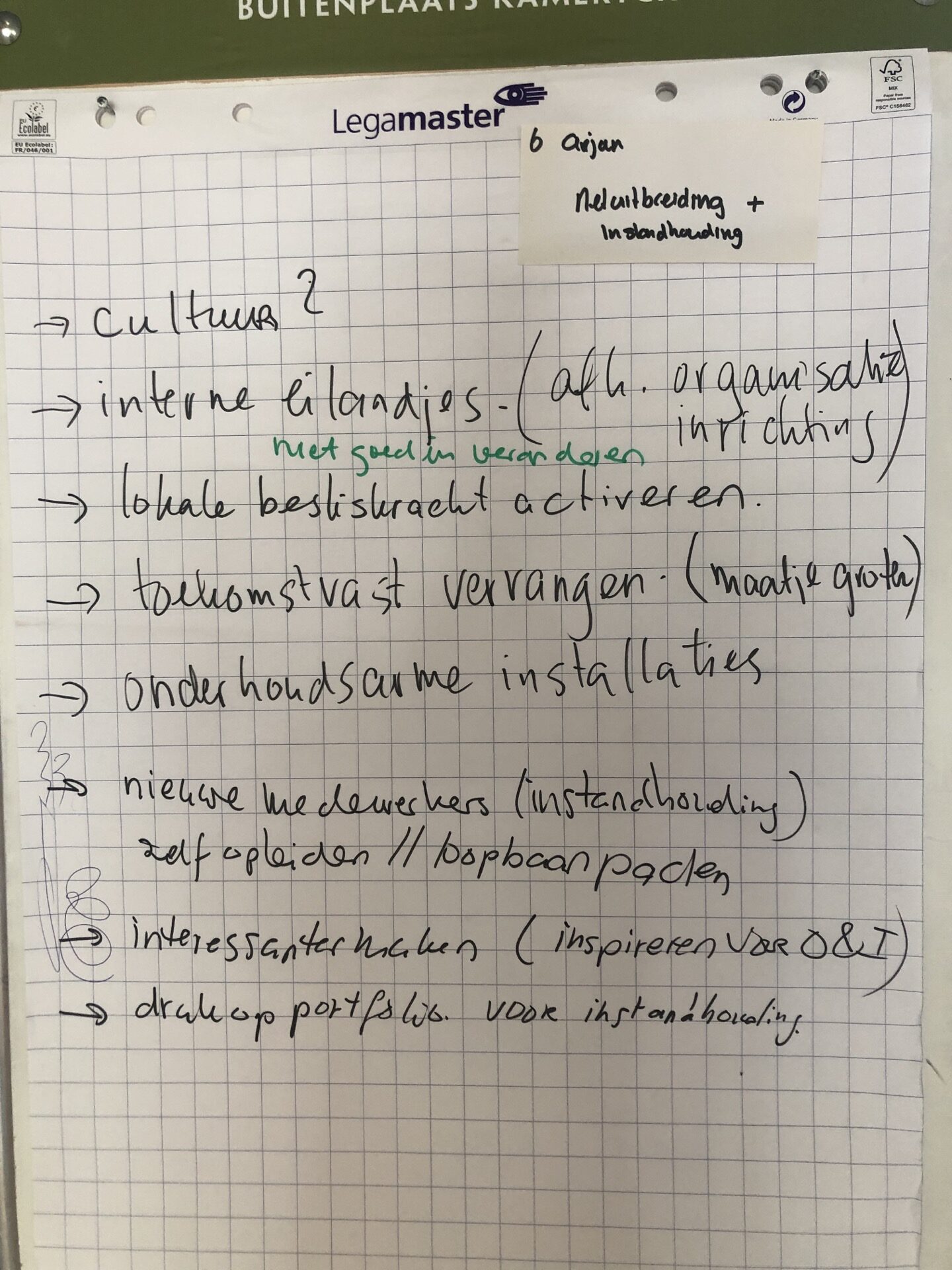 • Reviseren door leerlingen: We leiden medewerkers nu op tot monteur aan de hand van nieuwe installaties, maar we betrekken ze niet bij revisiewerkzaamheden. daarmee laten we kansen voor kennisbehoud over bestaande netten liggen. Dit zorgt er ook voor dat we minder goed storingen kunnen verhelpen en/of kansen voor herinzet bij storingen laten liggen.